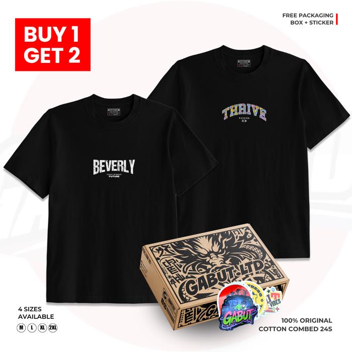 [GABUT] - PAKET BUNDLING 2PCS BAJU KAOS DISTRO UNISEX PRIA WANITA MOTIF BEVERLY DAN THRIVE BAHAN COTTON COMBED 24S KAOS