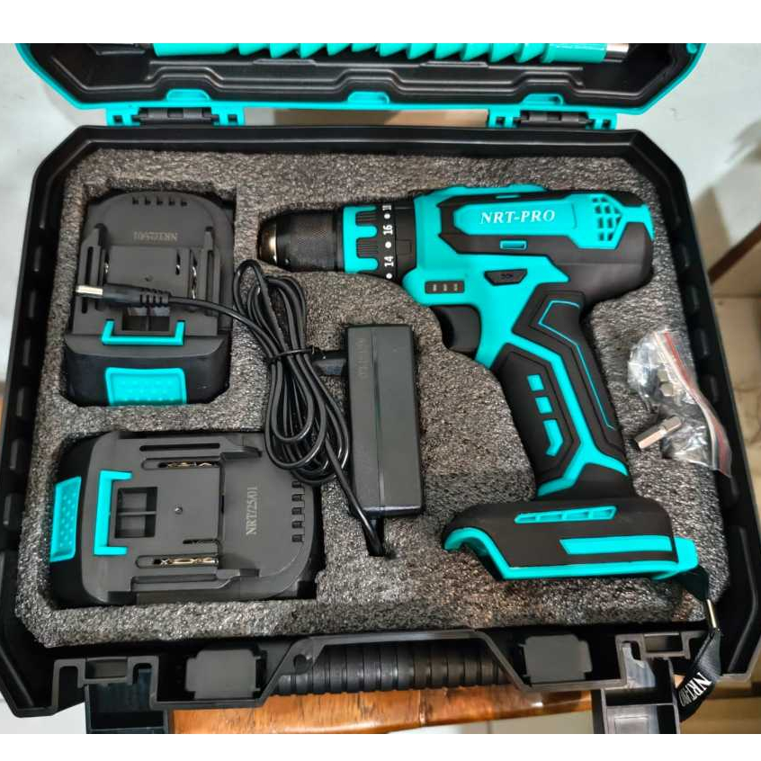 New Model Nrt Pro Dc-340 20 Volt Cordless Impact Drill - Bor Tembok Beton Dapat 2 Baterai