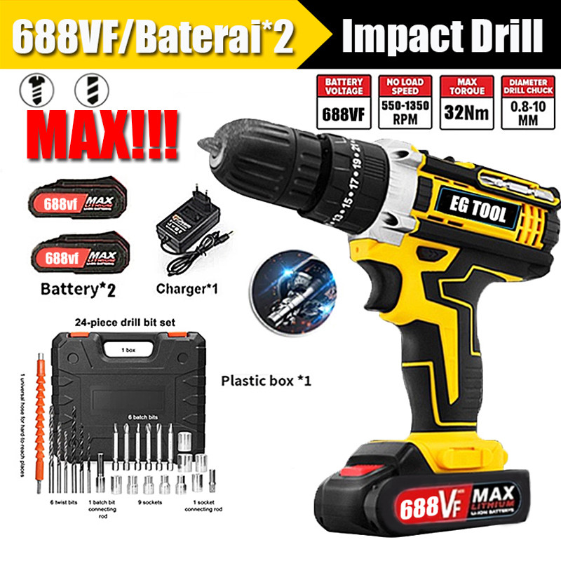 Bor Listrik 688Vf Mesin Bor Baterai Tangan Cordless Drill Battery Impact Drill Cordless Electric Drill Impact Cordless E