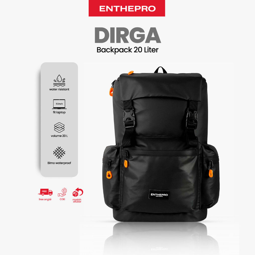 Enthepro - Tas Ransel Pria Waterproof Anti Air Tas Sekolah Kuliah Kerja Backpack Anti Air - Dirga