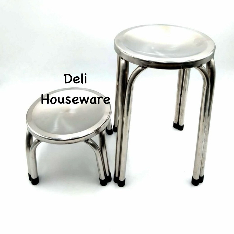 Kursi Bulat Stainless Kokoh Kuat / Bangku Warung Taman 4 Kaki Tebal