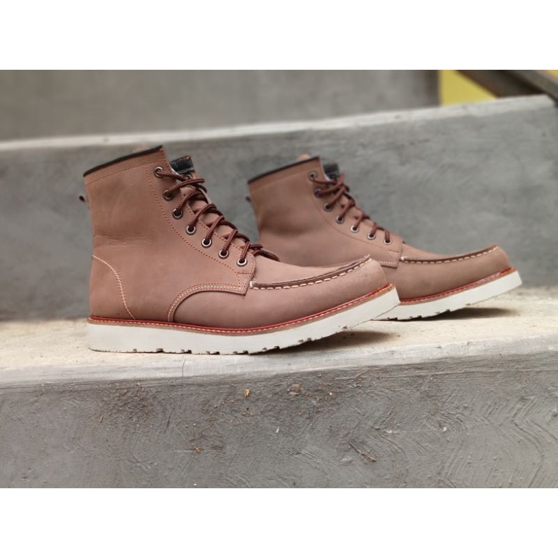 Sepatu Boots Model Redwingmoctoeboots Kulit Sapi Asli Crazy Horse