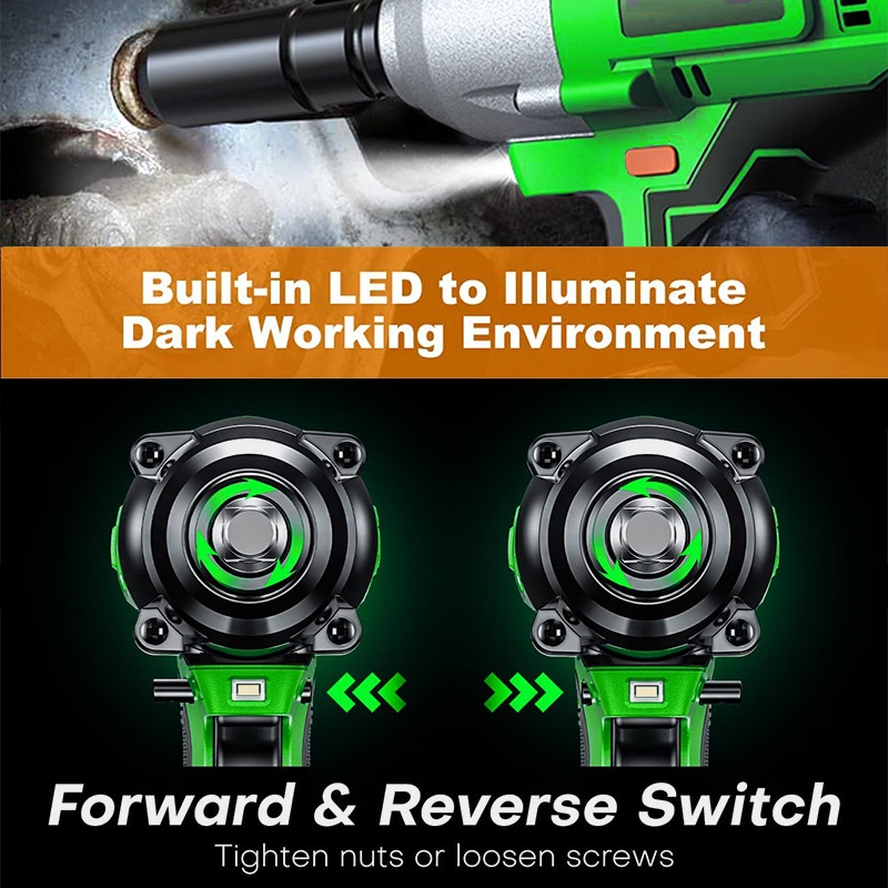 Reaim Cordless Impact Wrench 520N/M Impact Baterai Mesin Bor Bor Impact Baterai Impact Wrench Baterai