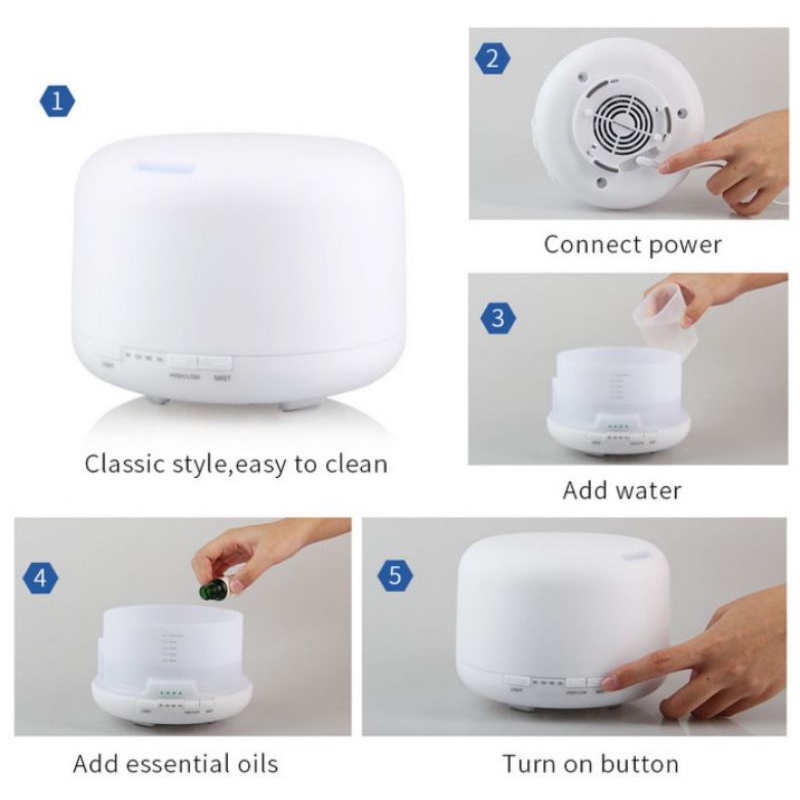 Ultrasonic Humidifier Diffuser Air Purifier Aromatherapy 500Ml