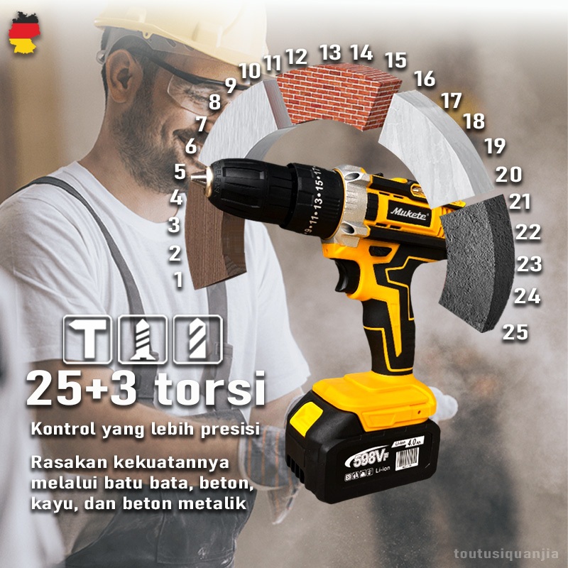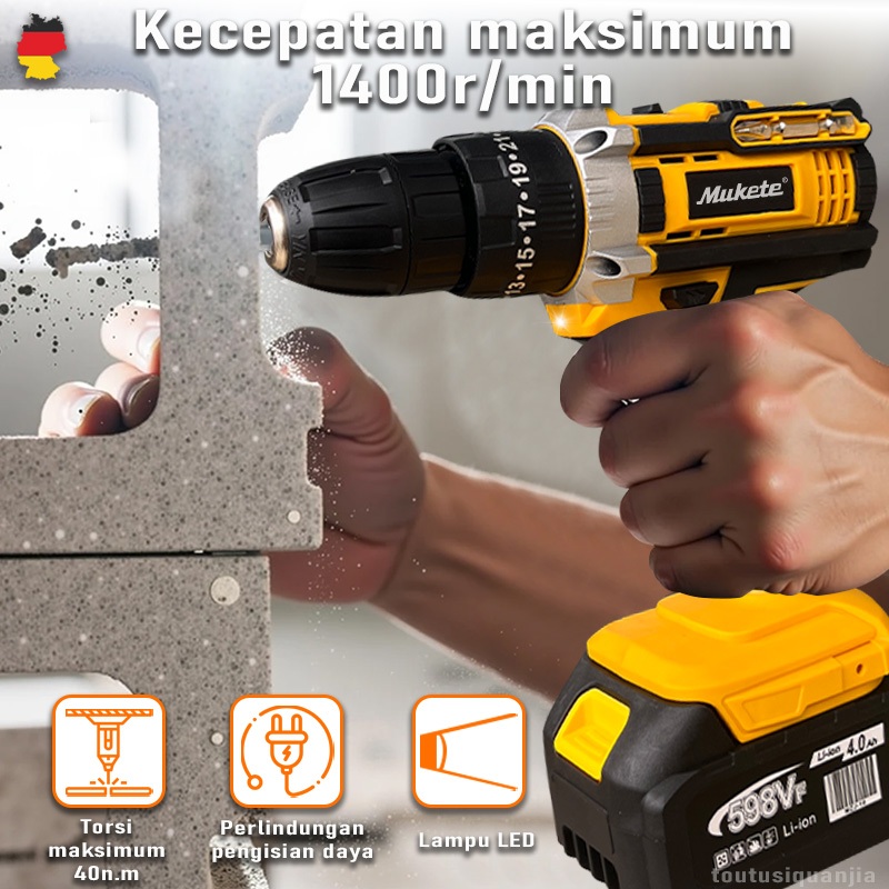 10Mm 3 In 1 Bor Baterai Bor Cordless Mesin Bor Baterai Bor Impact Baterai 598Vf Bor Cas Mesin Bor Baterai Tangan Cordles
