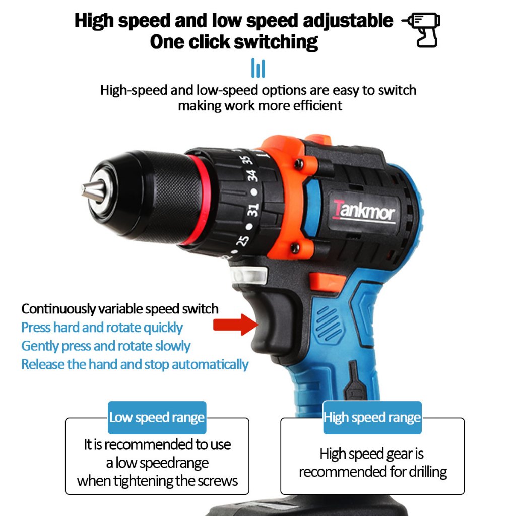 Hot Tankmor Mesin Bor 3In1 Cordless Impact Drill Screwdriver Multifungsi – Bor Listrik Untuk Beton, Kayu, Besi, Dan Temb
