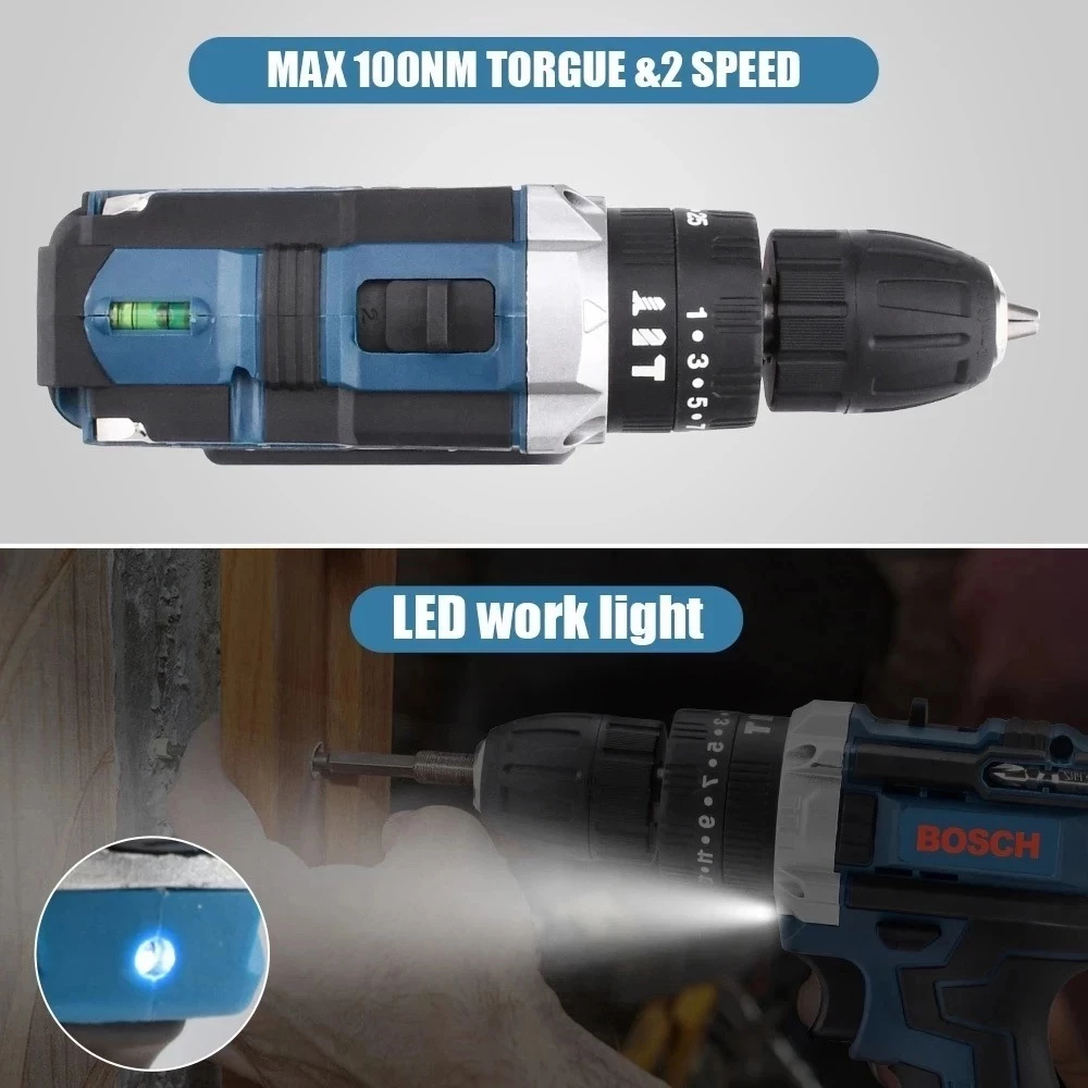 Bosch Cordless Hand Drill / Bor Tembok Baterai (2 Set Baterai) - Bor Listrik Set Lengkap
