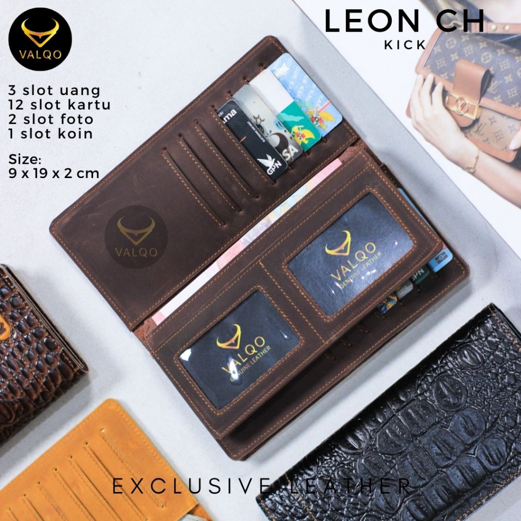Valqo Leon Dompet Kulit Sapi Panjang Pria Wanita 12 Kartu 2 Foto