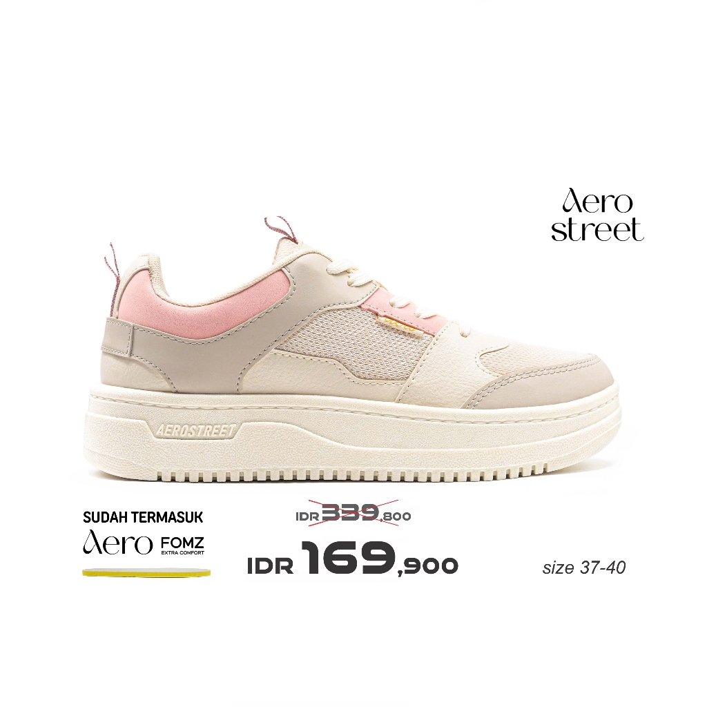Aerostreet 37-40 Evelyn Putih Natural Krem Merah Muda - Sepatu Sneakers Wanita