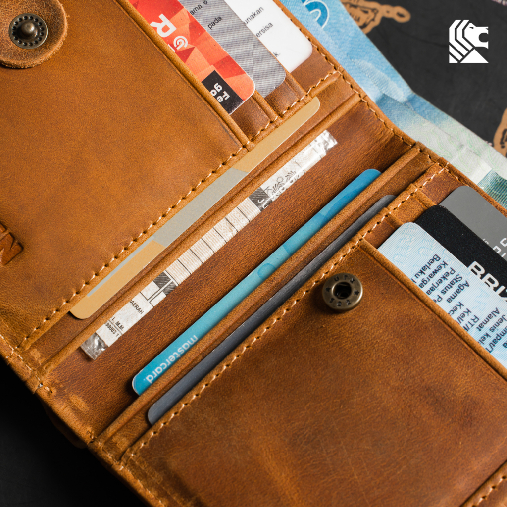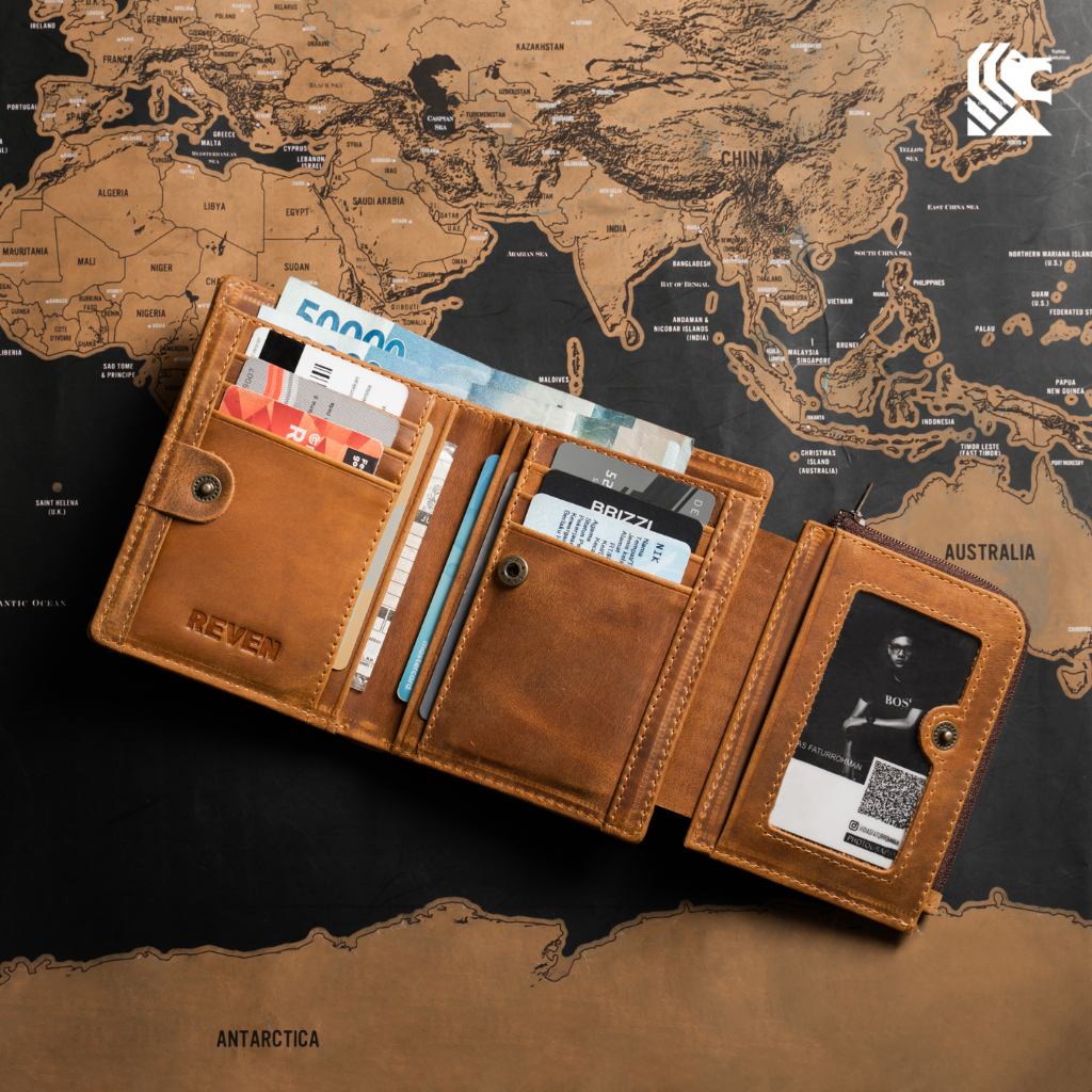 Dompet 3/4 Lipat 3 Pria Kulit Sapi Crazy Horse Kancing Klip Resleting Vintage Keren Kekinian Cowok Anak Laki