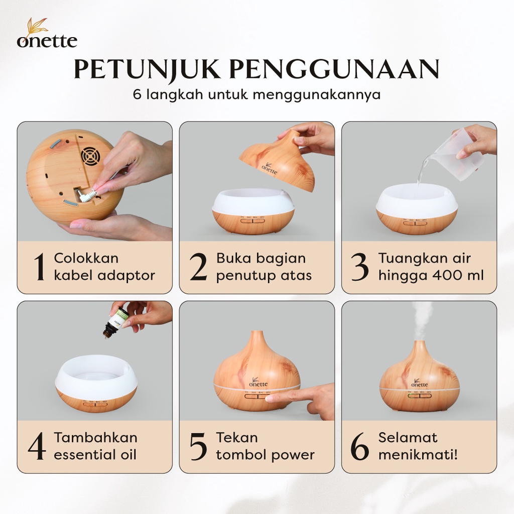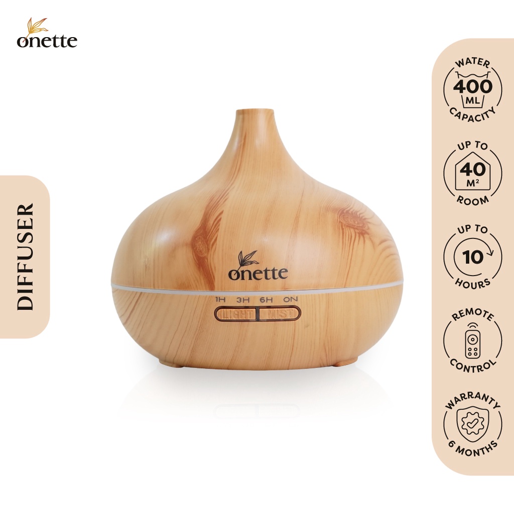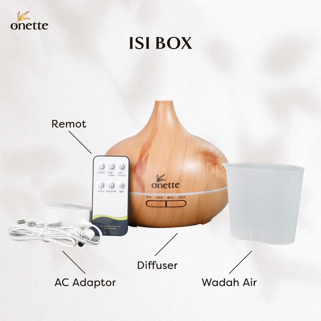 Onette Diffuser Aromatherapy Wooden Capacity 400 Ml & Essential Oil Set, Difuser Aromaterapi & Minyak Atsiri Murni - Lav