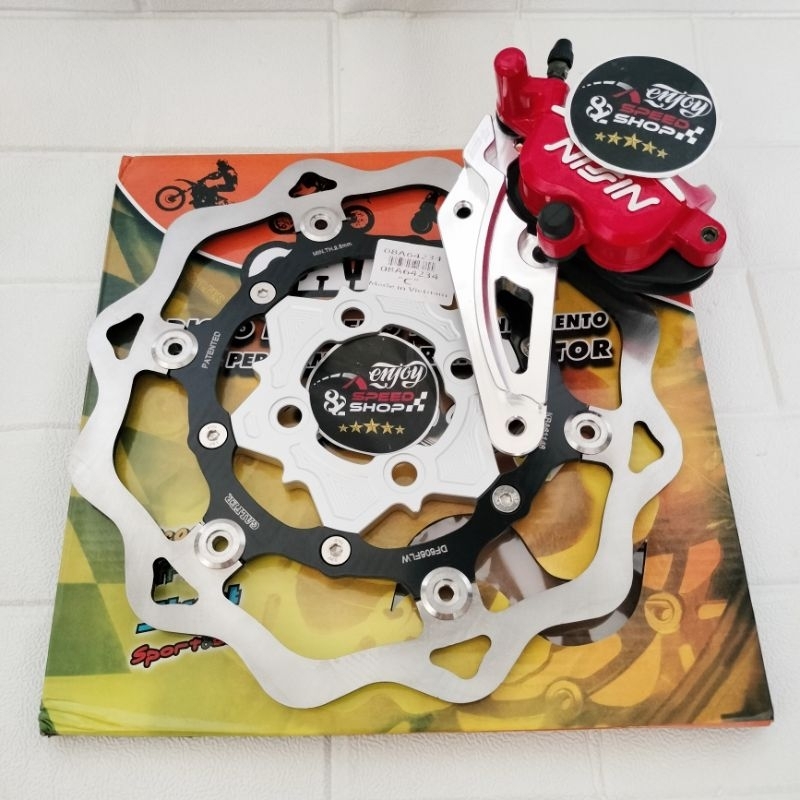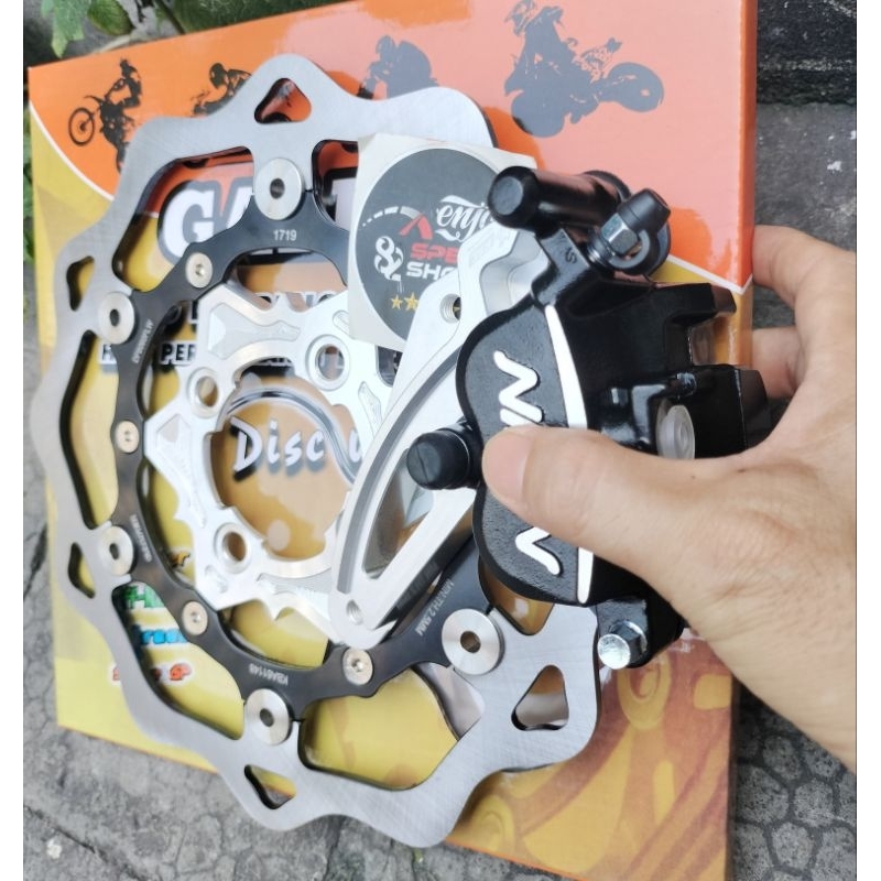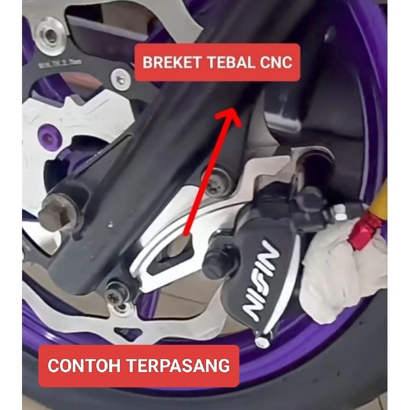 Paket Breket Cnc Kaliper Variasi Kiri Plus Galfer Breket Cnc Disc 260 Mm Beat / Scopy / Vario Lubang 4