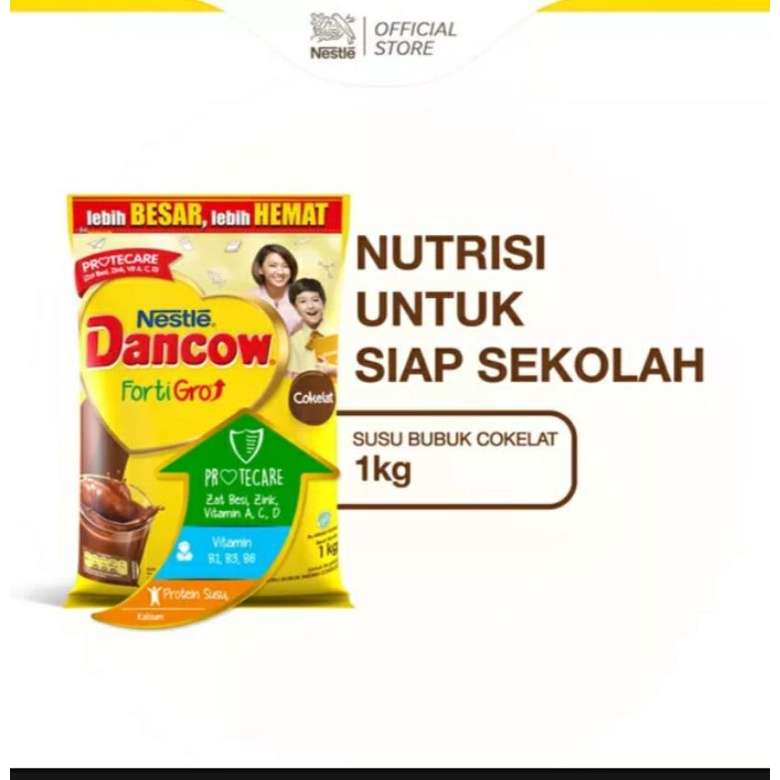 Dancow Fortigro Susu Bubuk Cokelat, Dan Full Cream Usia Sekolah Pouch 1Kg Exp Agustus 2026