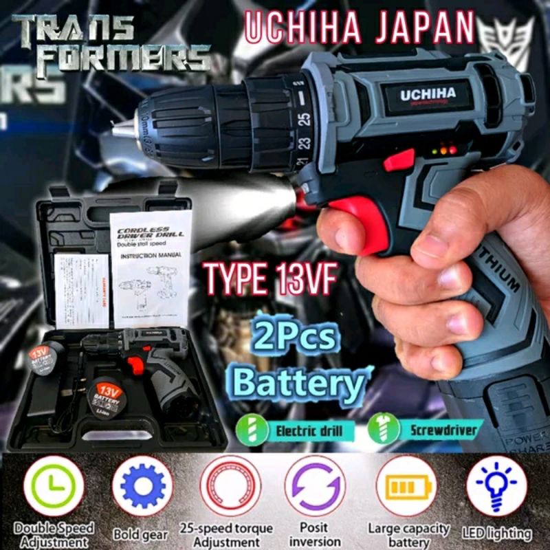 Mesin Bor Baterai Kayu Besi Obeng Elektrik Uchiha Japan Cordless Drill
