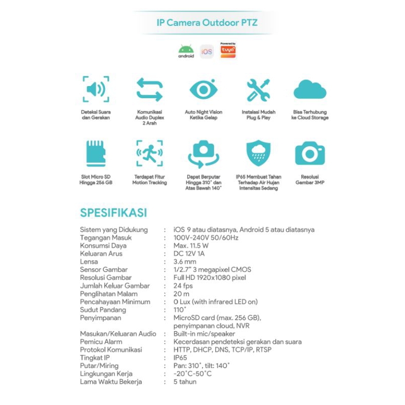 Bardi Official Smart Ip Camera Outdoor Ptz Wireless Dual Band 2,4/ 5Ghz - Cctv Putar 310 ° Wifi Kamera 3Mp Full Hd With