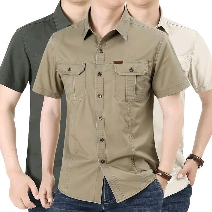 KOMARA STORE KEMEJA PENDEK PRIA BAHAN COTTON BABY CANVAS LENGAN PENDEK CASUAL DEWASA KEREN FORMAL COWOK SIZE M-5XL READY