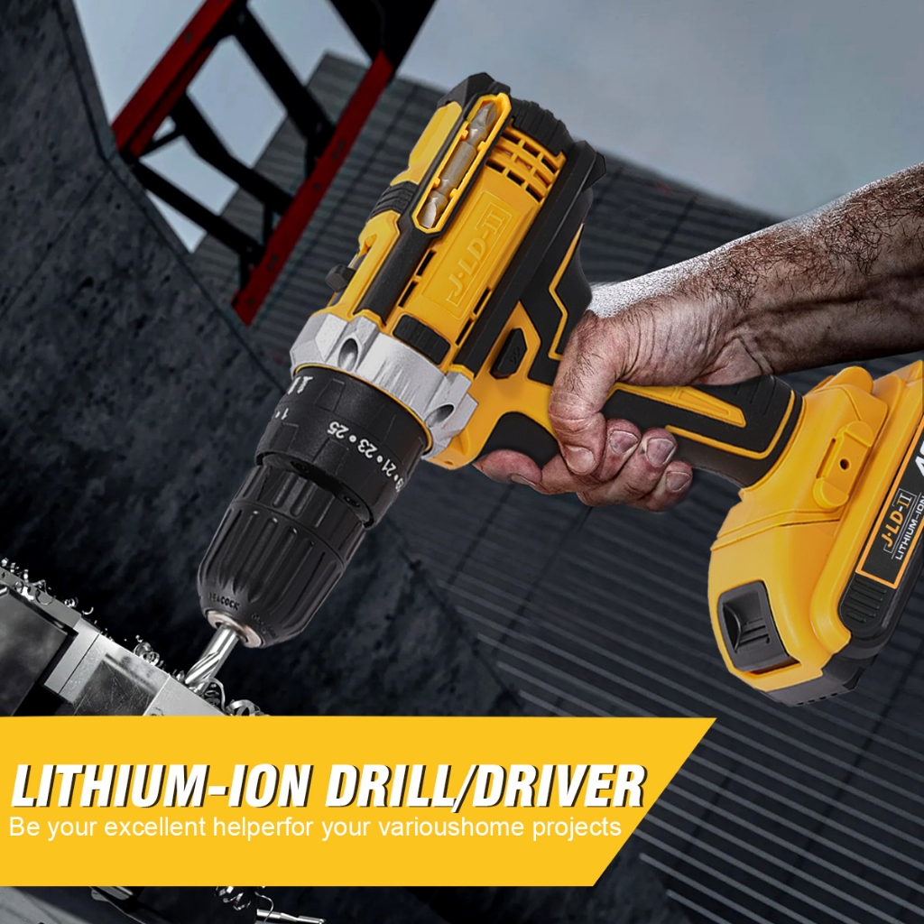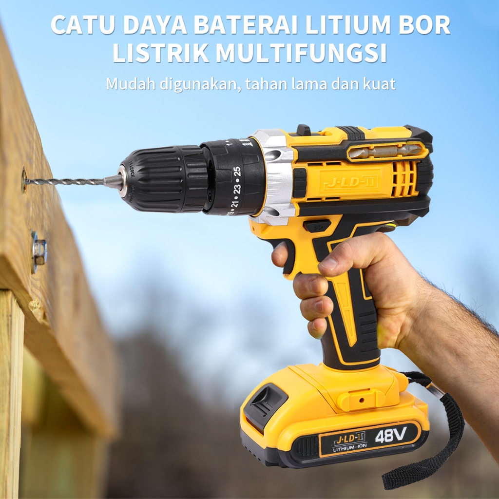 Jld 48Vf Mesin Bor Impact Baterai 2-Speeds Built-In Bit Slots&Level Bor Cas Jld 2 Bater Case 25+3 Bor Cordless Impact Dr