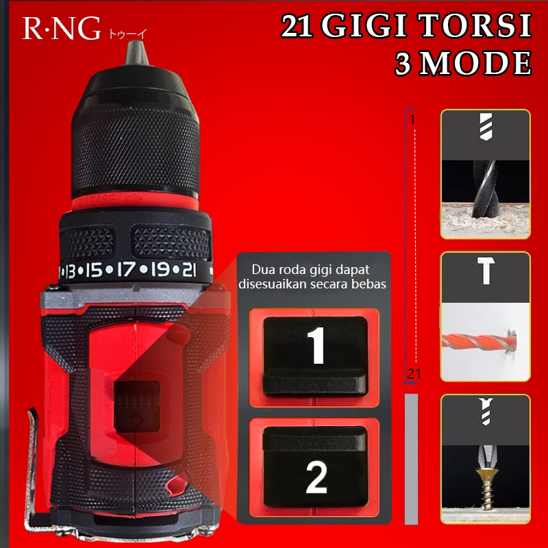 R-Ng 1400 R/Min Impact Drill Bor Baterai Bor Cordless Mesin Bor Listrik Bor Impact