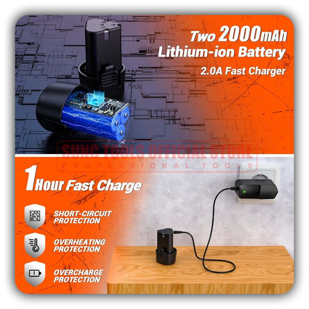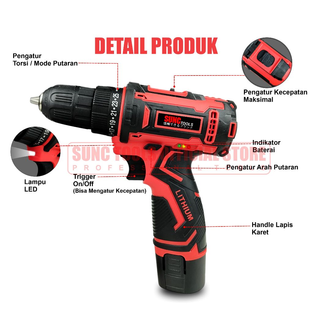 Sunc Tools Set Mesin Bor Baterai 12V / Bor Bor Batere / Cordless Drill