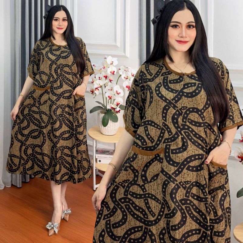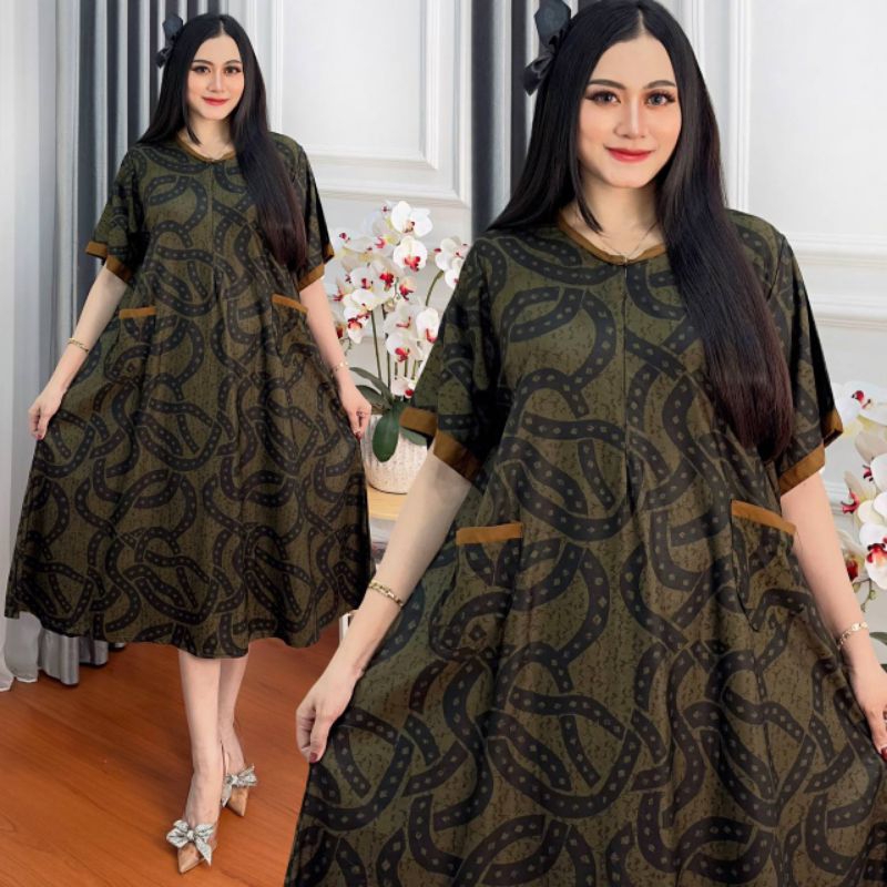 Daster Jumbo Ld 130 Busui Kekinian Resleting Depan Saku Rayon Premium