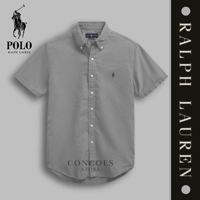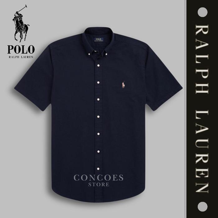 KEMEJA POLOS PRIA LENGAN PENDEK P.O.L.O'S. PREMIUM ORIGINAL. LOGO BORDIR, CASUAL,MODEL SLIMFIT, - NAVY, M