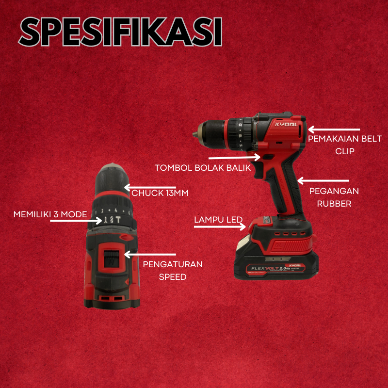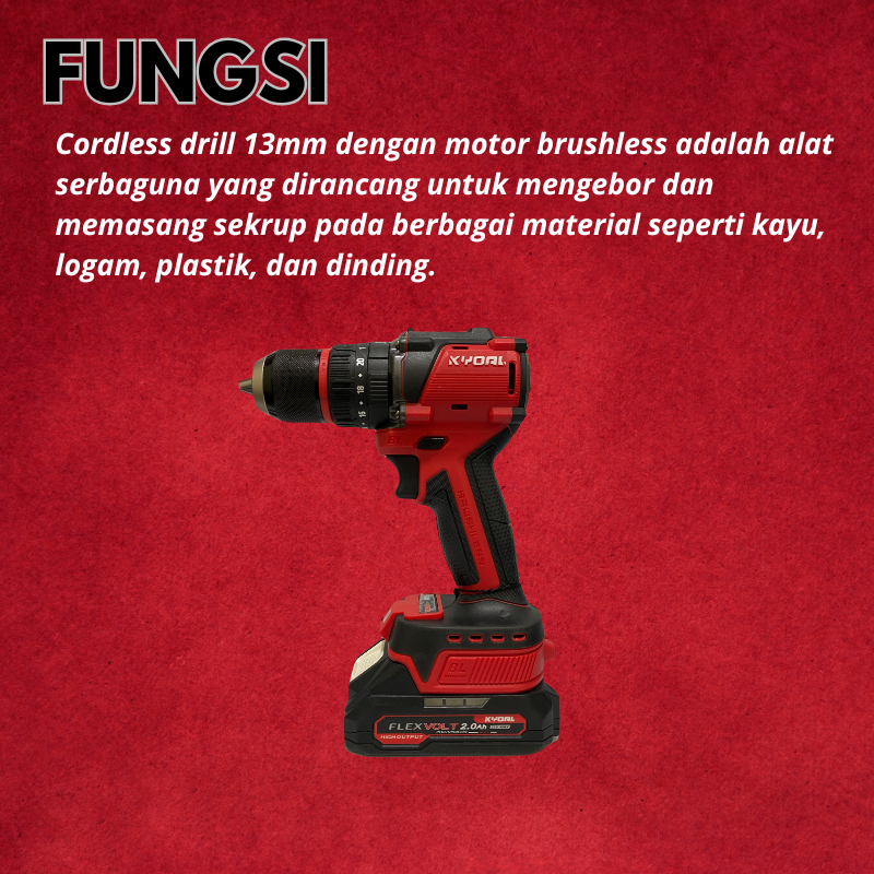 Kyoal Mesin Bor Cordless Drill Brushless 13Mm Bor Tembok Beton Besi Impact Baterai 3 Mode - Ky-6065