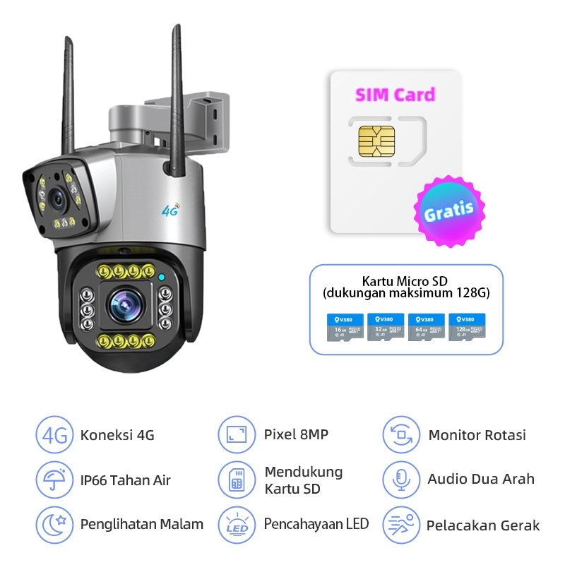 Franwell Cctv 4G Dual Lensa 8Mp Outdoor | Gratis Sim | Night Vision | Audio 2 Arah | Tahan Hujan