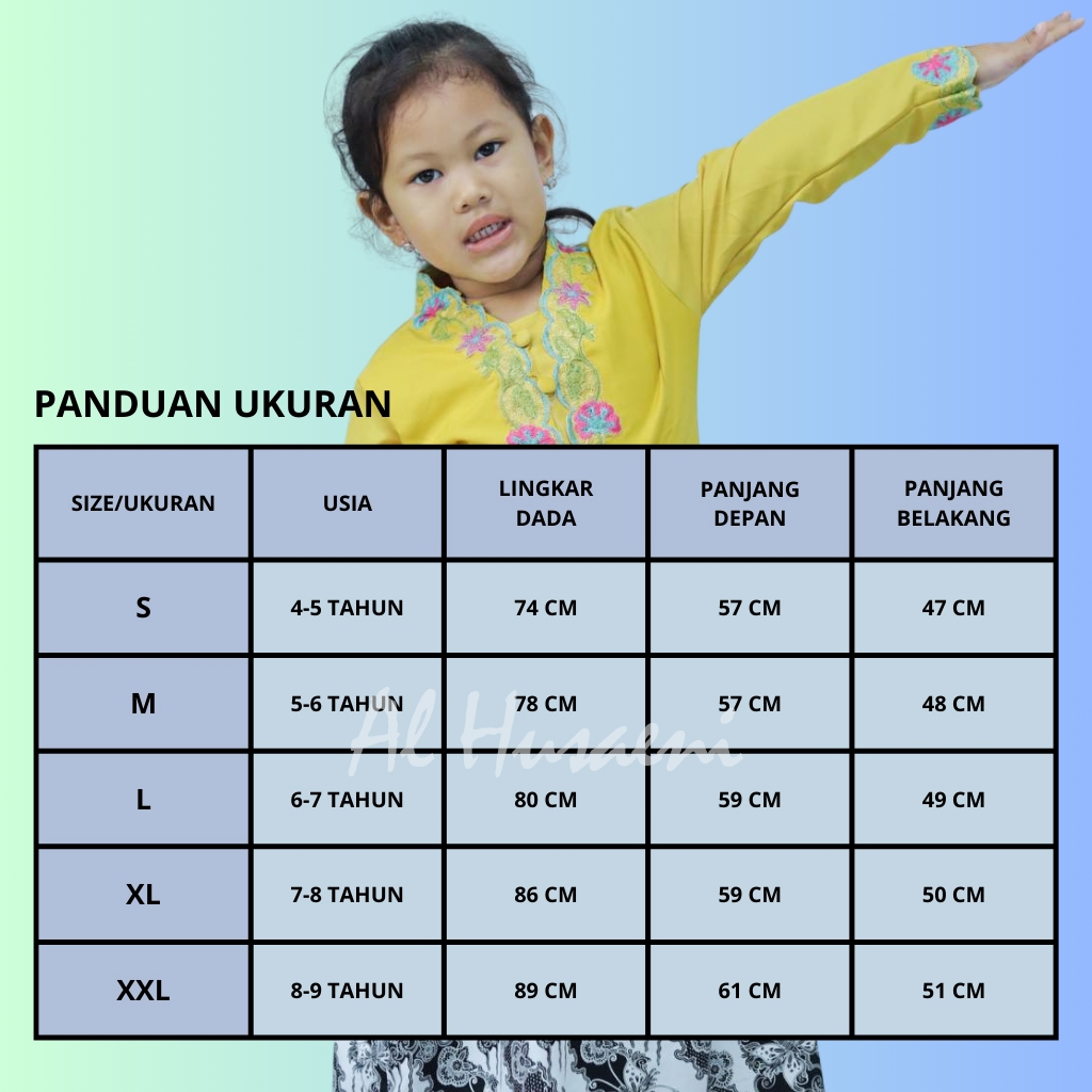 Al Husaeni | Kebaya Encim Anak Polos Tk Sd Lengan Panjang | Atasan Kebaya Encim Bordir Usia 4 - 9 Tahun Terlaris | Baju