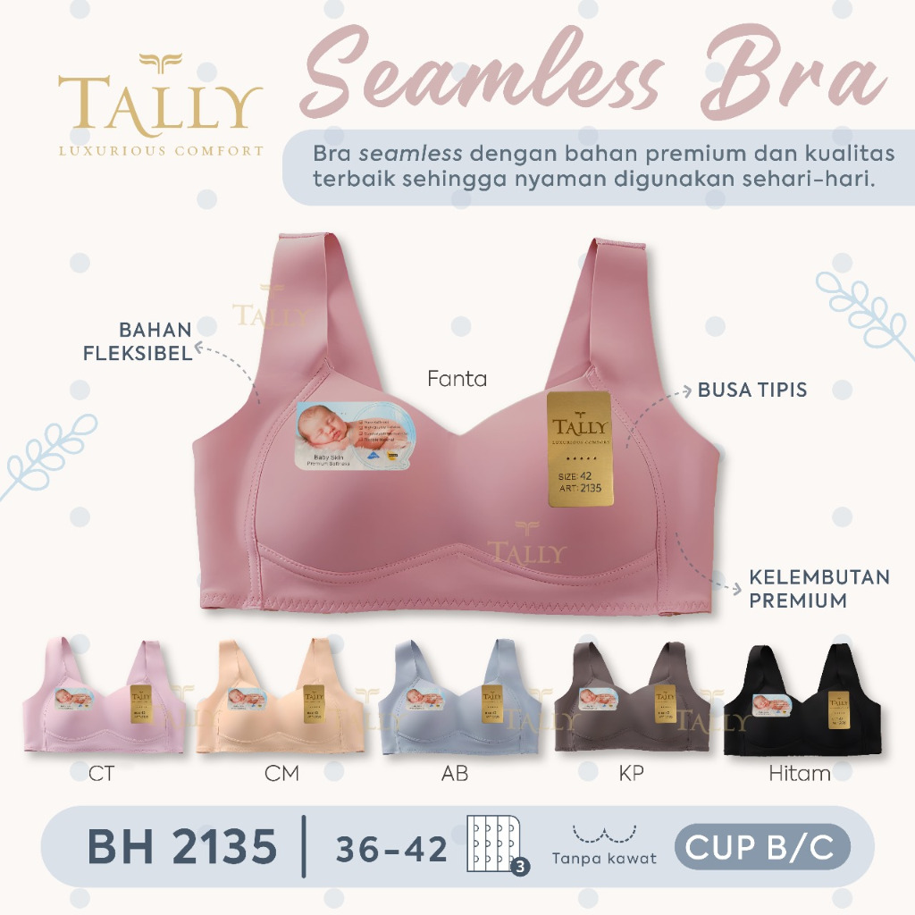 Tally 2135 Bra Bh Wanita Seamless | Busa Tipis | Full Cup B - C | Tanpa Kawat | Kait 3 | Size 36 - 42