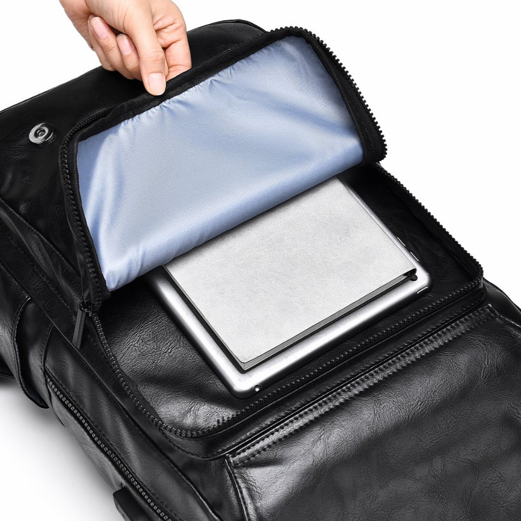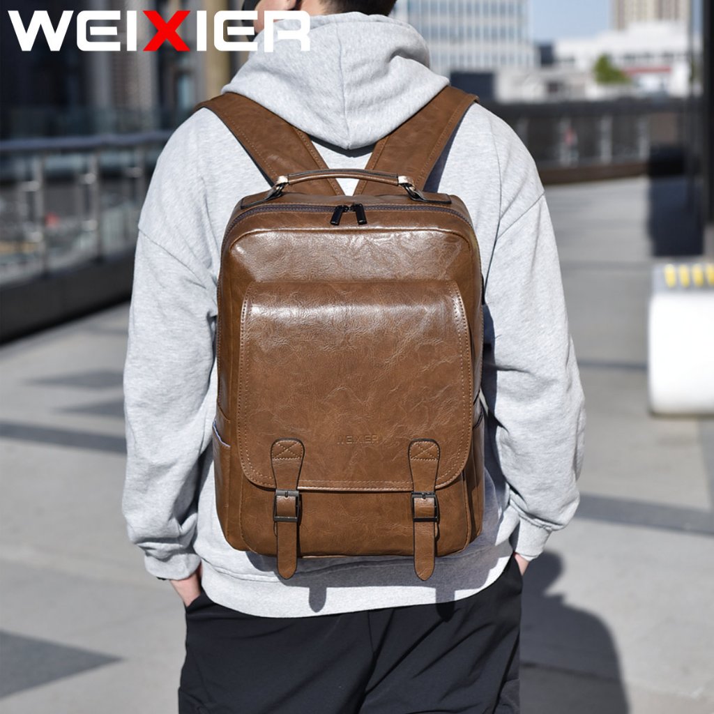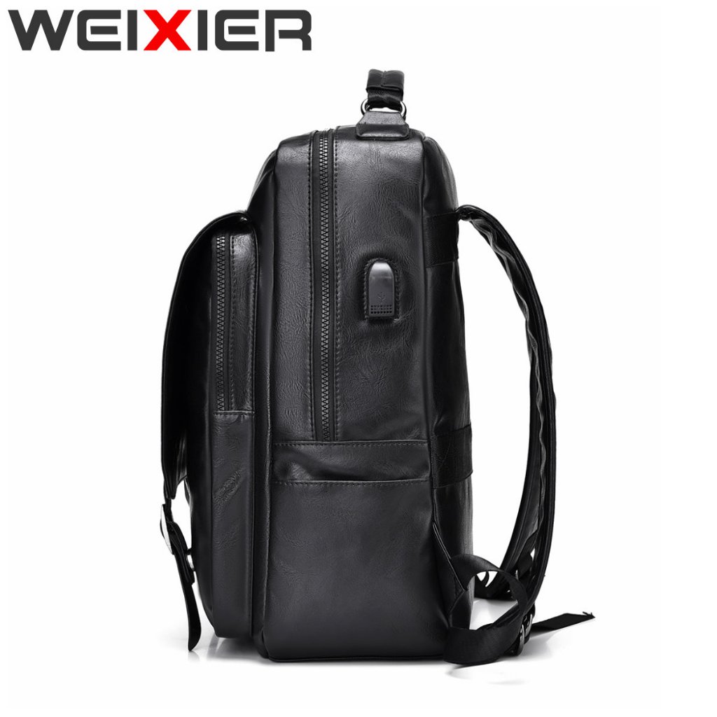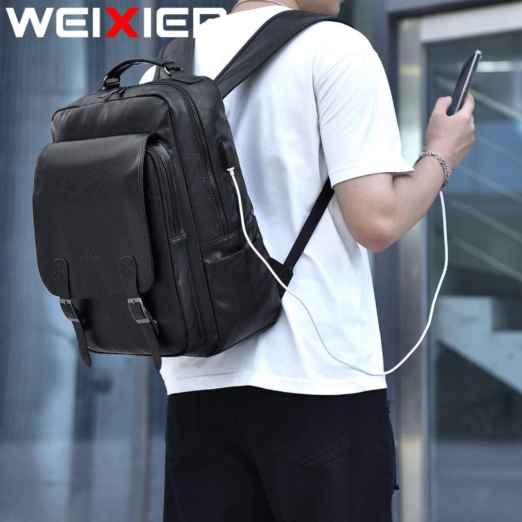 Weixier B677 Tas Punggung Pria Kulit Ransel Laptop Usb Port Wx-Os