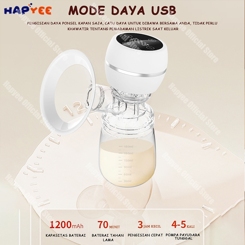 Hapyee Pompa Asi Electric Portable Tanpa Rasa Sakit Painless Rechargeable Single Electric Breast Pump Bpa Free