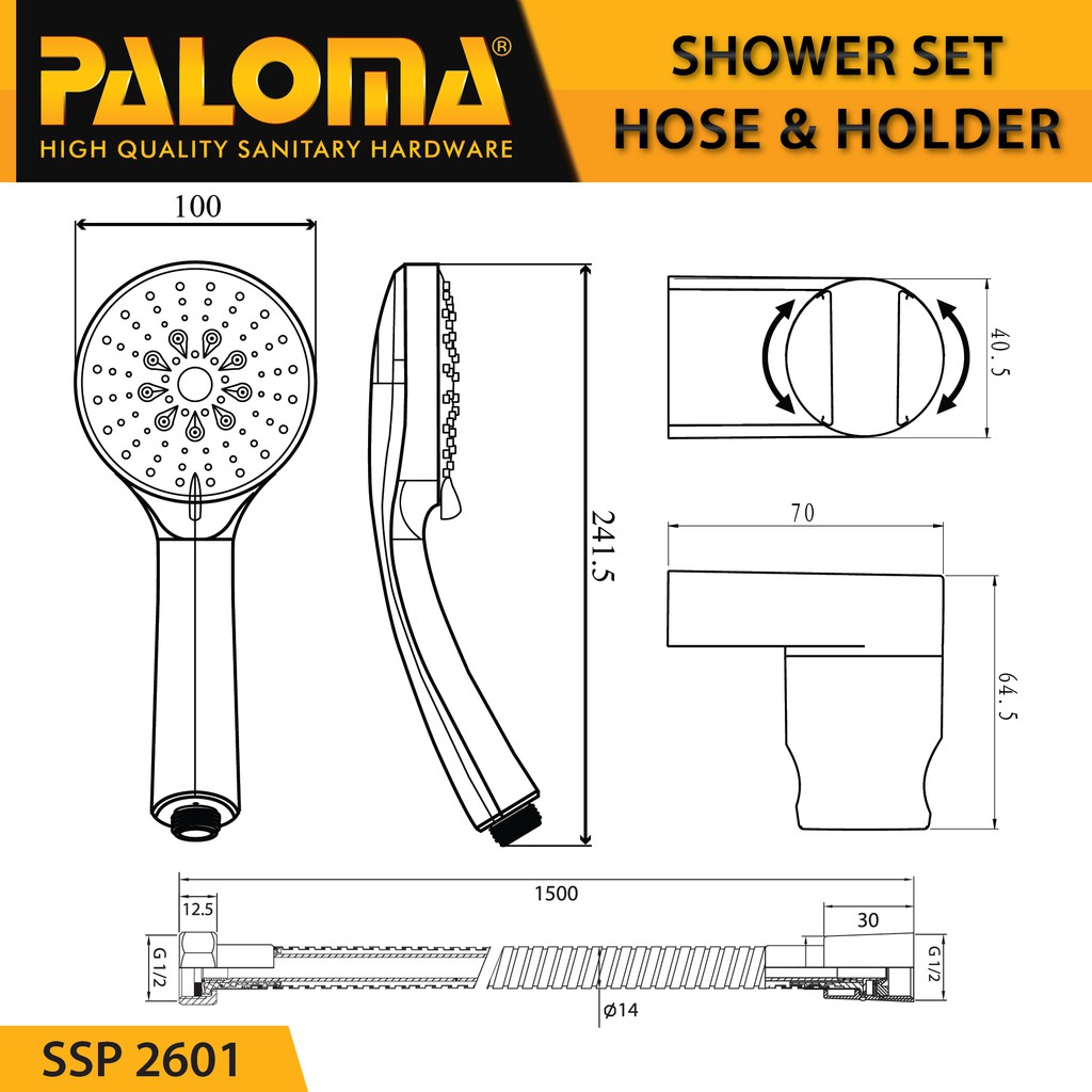 Paloma Ssp 2601 Shower Set Handshower Mandi Hand Shower Kepala Shower Head Air Paket
