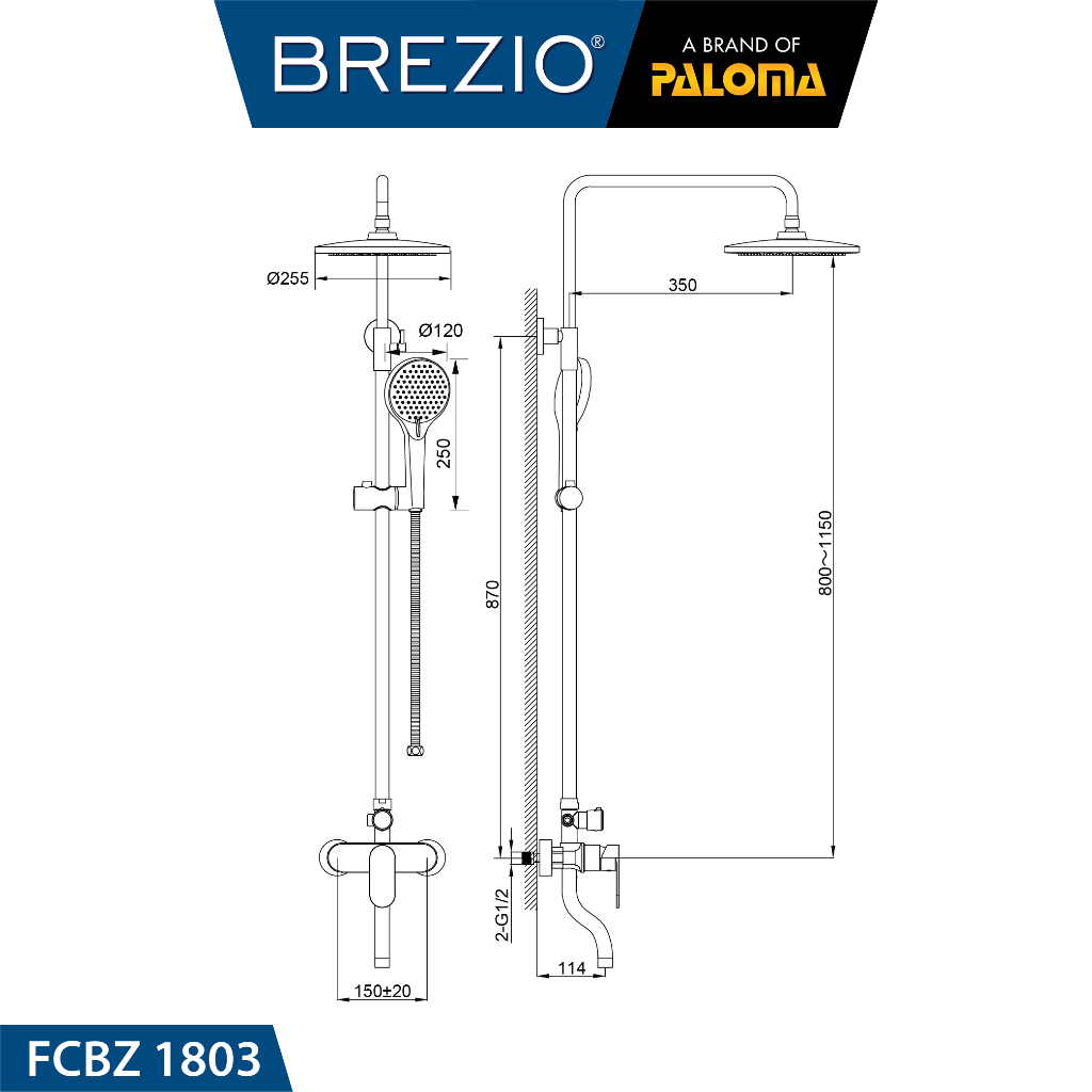 Brezio Fcbz 1803 Shower Tiang Set Column Mandi Keran Kran Panas Dingin