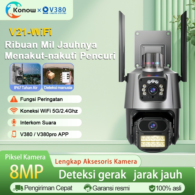 Konow V380 Pro Cctv Dual Lens Wifi Kamera 8Mp Hd 4K Panorama 360 ° Night Vision Outdoor Ip67 Waterproof Smart Cctv