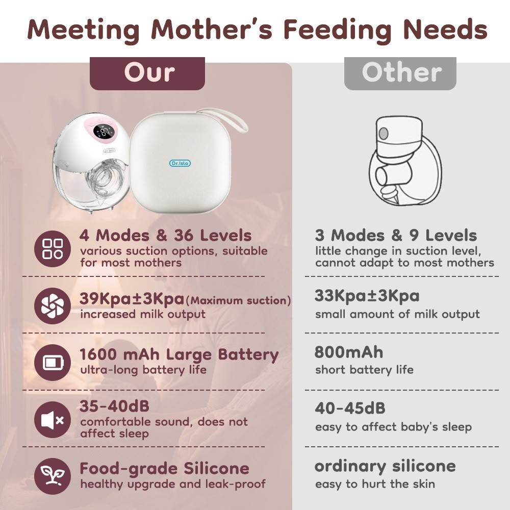 Dr.Isla Pompa Asi Electric Handsfree 4 Mode 36 Level Breast Pump Portable 19Mm 24Mm 27Mm Bayi Baru Lahir Pena
