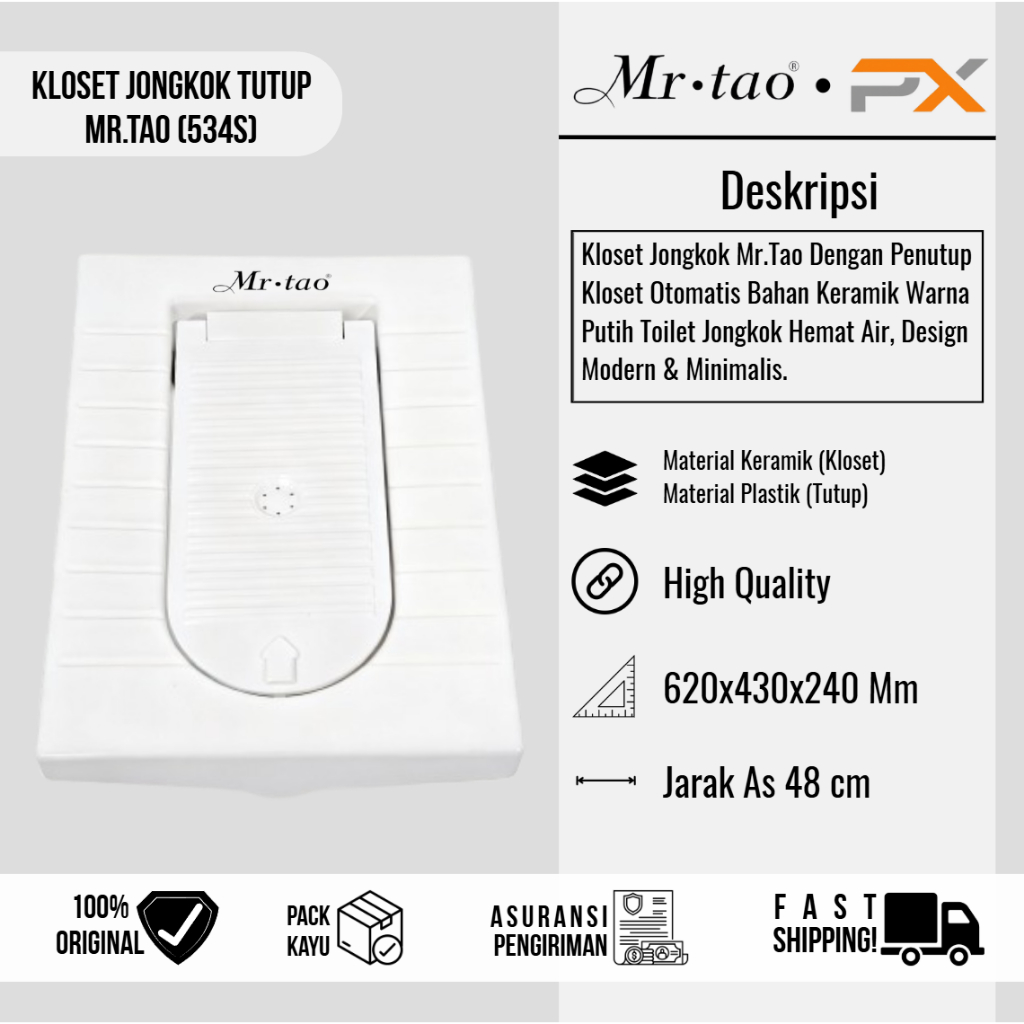 Mr.Tao Kloset Jongkok 1Set + Closet Penutup Kloset Otomatis Free Packing Kayu