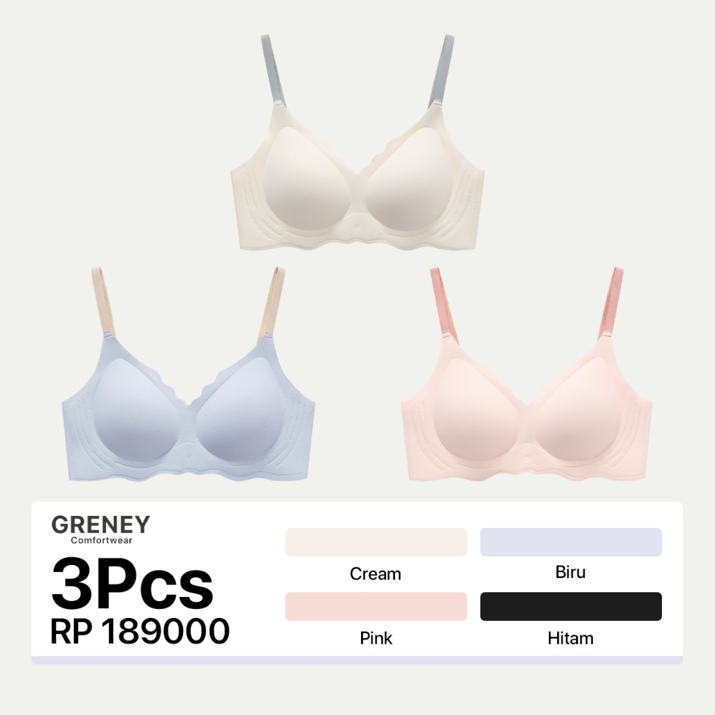 Greney-Gbras-Paket Bra (3Pcs) Bra Gelombang Gesper 2 Push Up Bra Wanita Busa Tipis Tanpa Kawat-89418