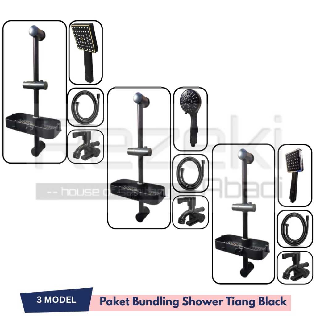 Paket Bundling Shower Tiang Dan Kran Cabang Black - Shower Mandi - Handshower - Keran Air