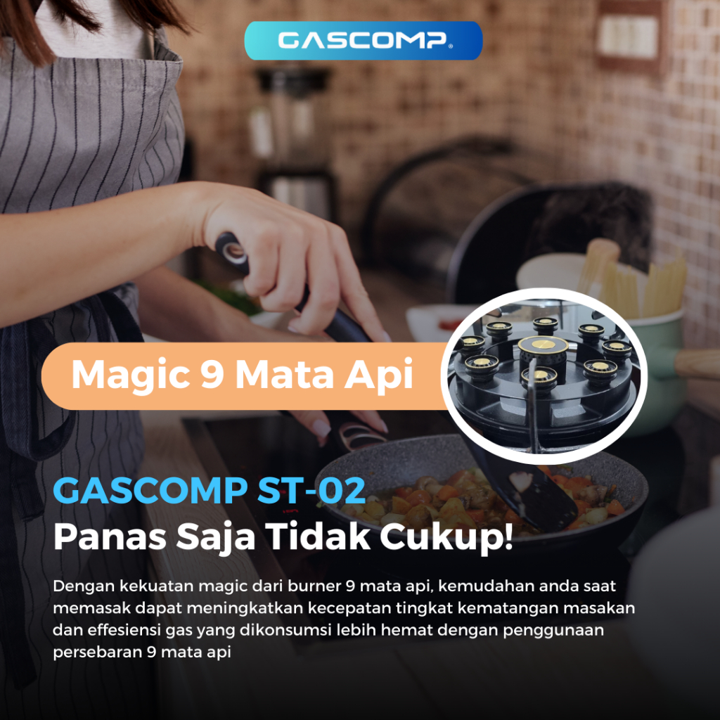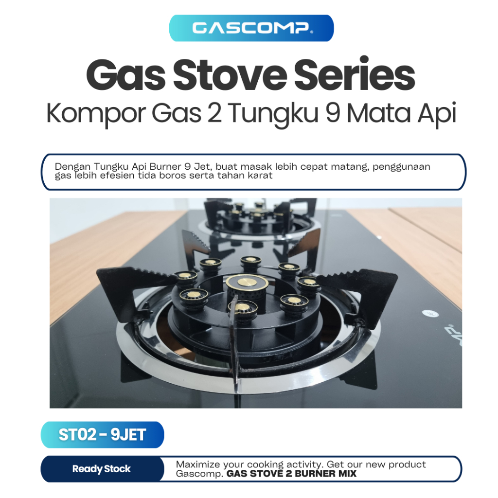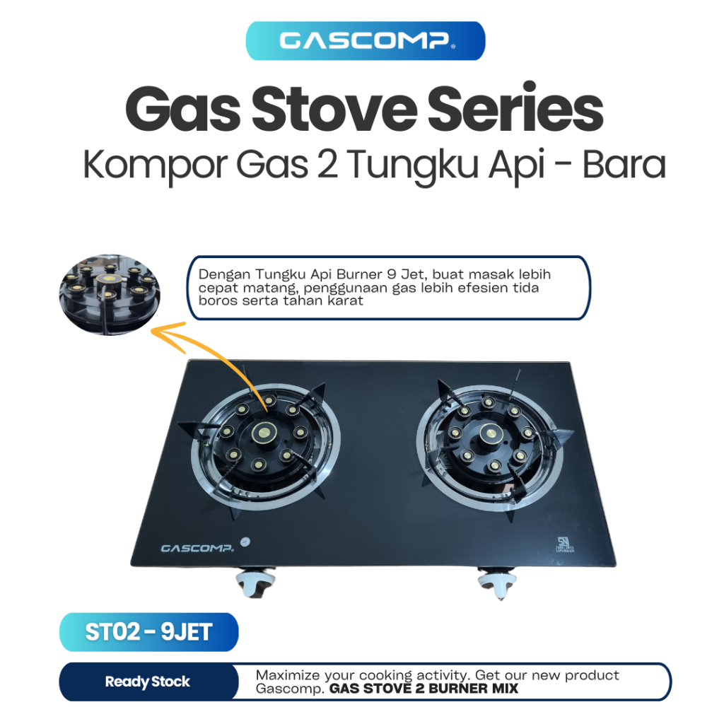 Gascomp Kompor Kaca 2 Tungku Burner Turbo 9 Jet - Kompor Gas Kaca Spesial Burner Turbo 9 Mata Garansi Resmi Kaca 5 Tahun