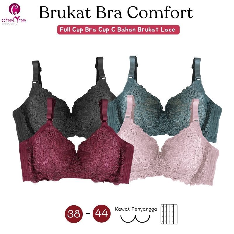 Chelyne Bh Wanita V3571 Jumbo - Full Cup Bra Full Brukat Dengan Kawat Penyangga - Big Size Bra 38/44 Cup C