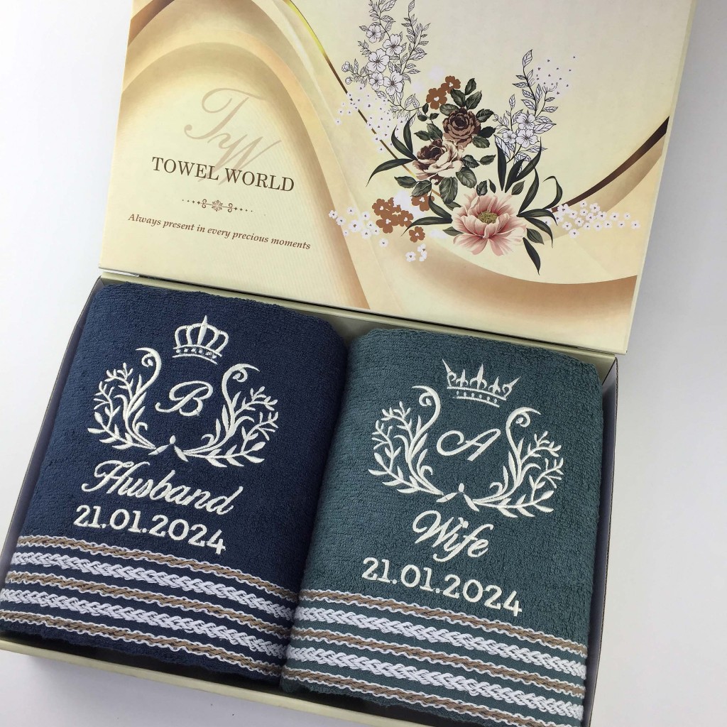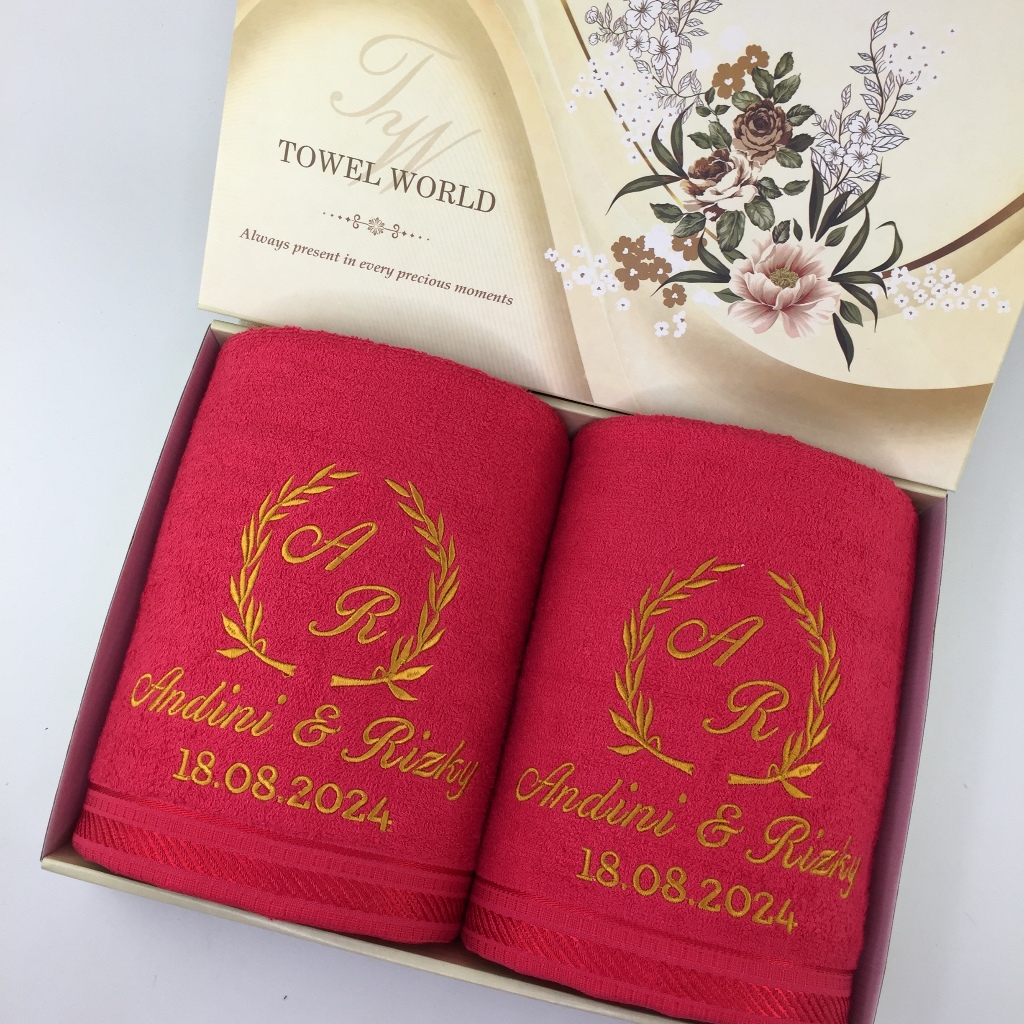 Paket 2 Pcs Handuk Merah Putih 70X135 + Box + Bordir / Handuk Seserahan Pernikahan Handuk Couple