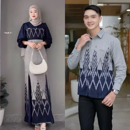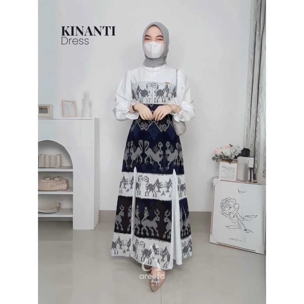 Gamis Dress Etnik Tenun Premium Remaja Wanita Warna Putih Navy Gamis Tenun Etnik Kombinasi