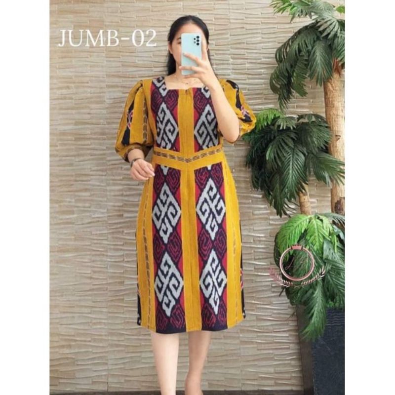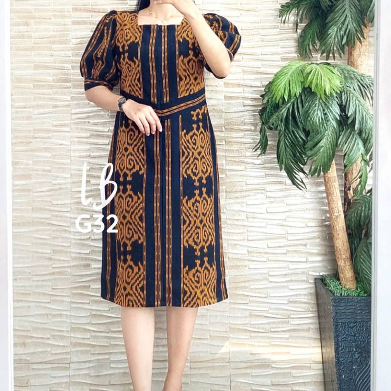 Baju Dress Pesta Kombinasi Obi Belt, Dress Tenun Slim