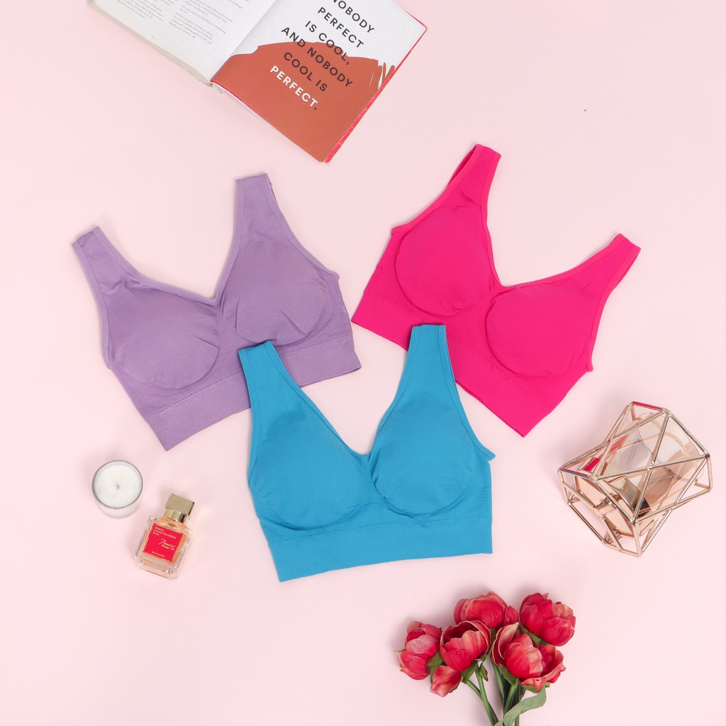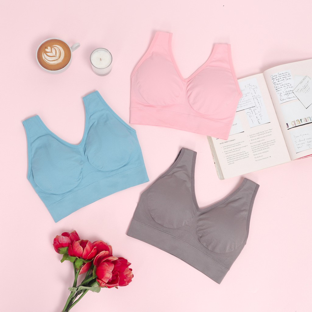 Genie Bra Wanita Tanpa Kawat (Isi 3 Pcs) | Bh Sport, Push Up, Busa, Tanpa Tali, Jumbo | Beha Remaja | Tenis Padel Senam