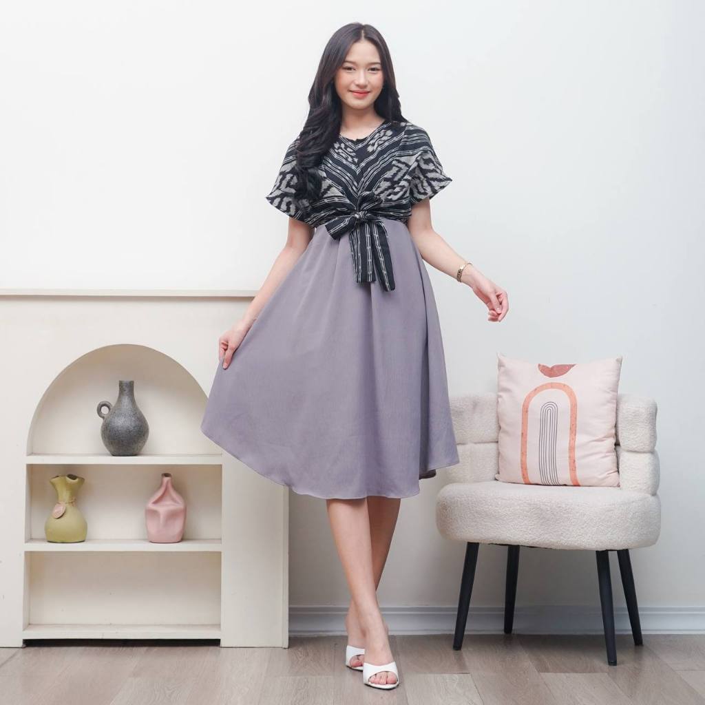Keishan.Id - Kirana Dress Tenun Ikat Asli Baju Wanita Pesta Midi Casual Katun