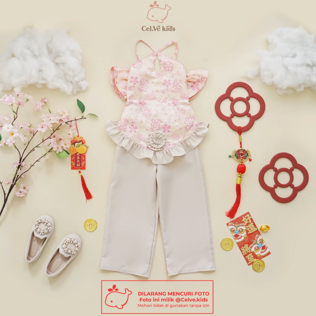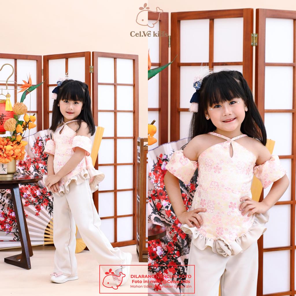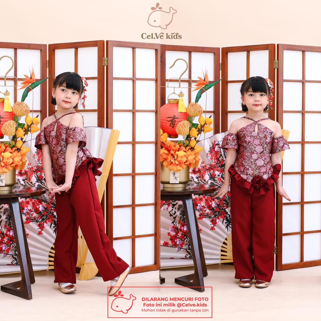 Celvekids - Stelan Imlek Ya Ling Set Baju Celana Anak Perempuan Korean Style Bahan Semiwool + Ceongsam Usia 1-8Th