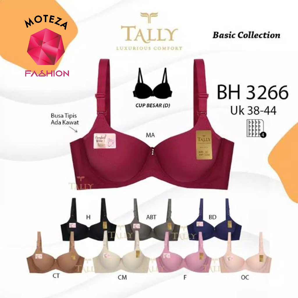 Tally 3266 Bra Bh Wanita Jumbo Big Size | Pori | Busa Tipis | Full Cup D | Kawat | Kait 4 | Size 38 - 44