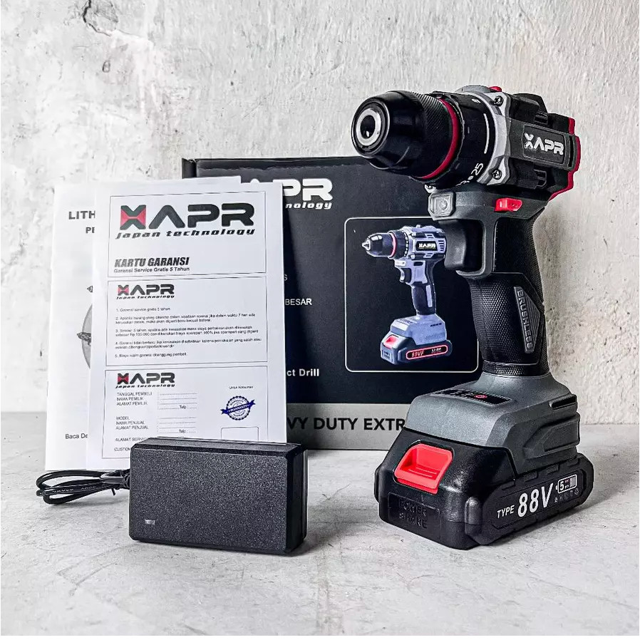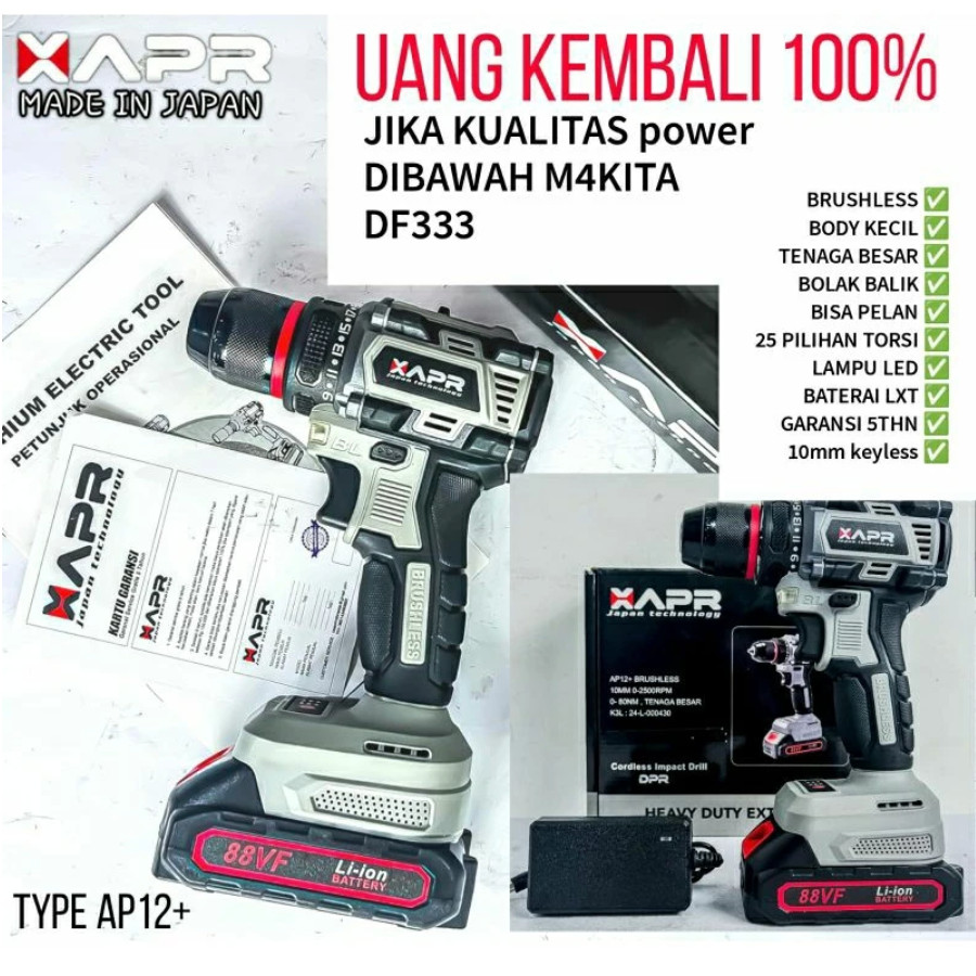 Apr Raja Bor Cordless Brushless Type Ap12+ 10Mm Keyless Auto Lock Mesin Bor Besi Kayu Driver Sekrup Drill