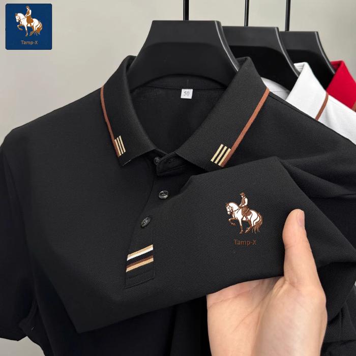 TAMP-X POLO SHIRT PRIA DISTRO BORDIR KERAH CASUAL LENGAN PENDEK PREMIUM ORIGINAL KOREAN STYLE SLIM FIT HITAM POLO TIPIS