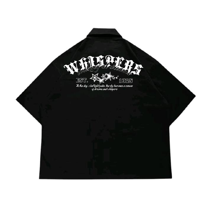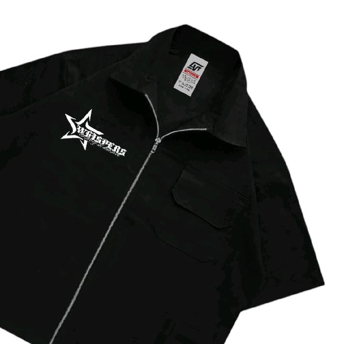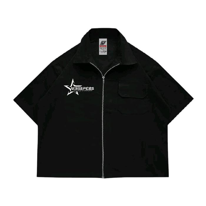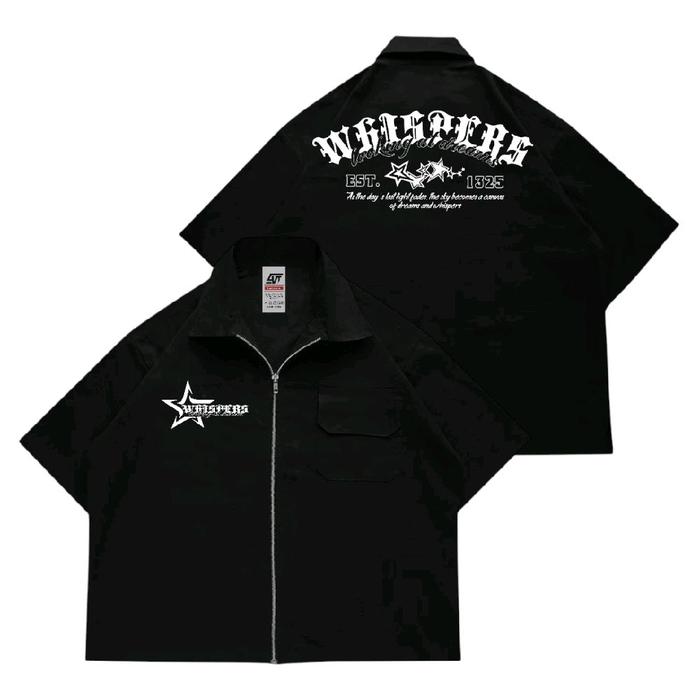 GIOVENT WORK SHIRT ZIPPER BOXY KEMEJA KERJA CASUAL BLACK "WHISPERS" - HITAM, M